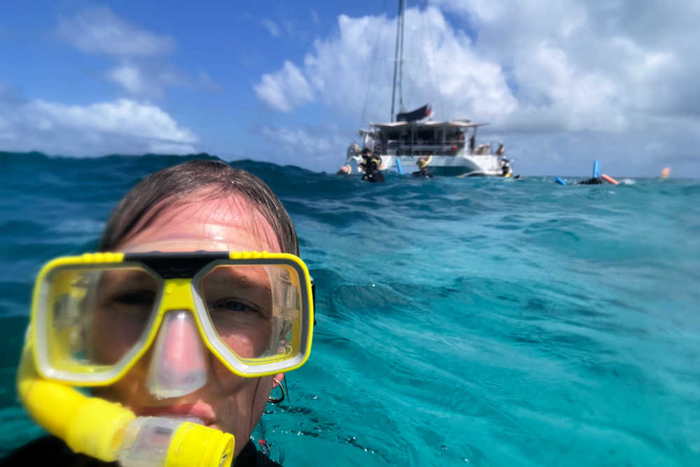Snorkel in the clear shallow waters of the lagoons near the Great Barrier Reef